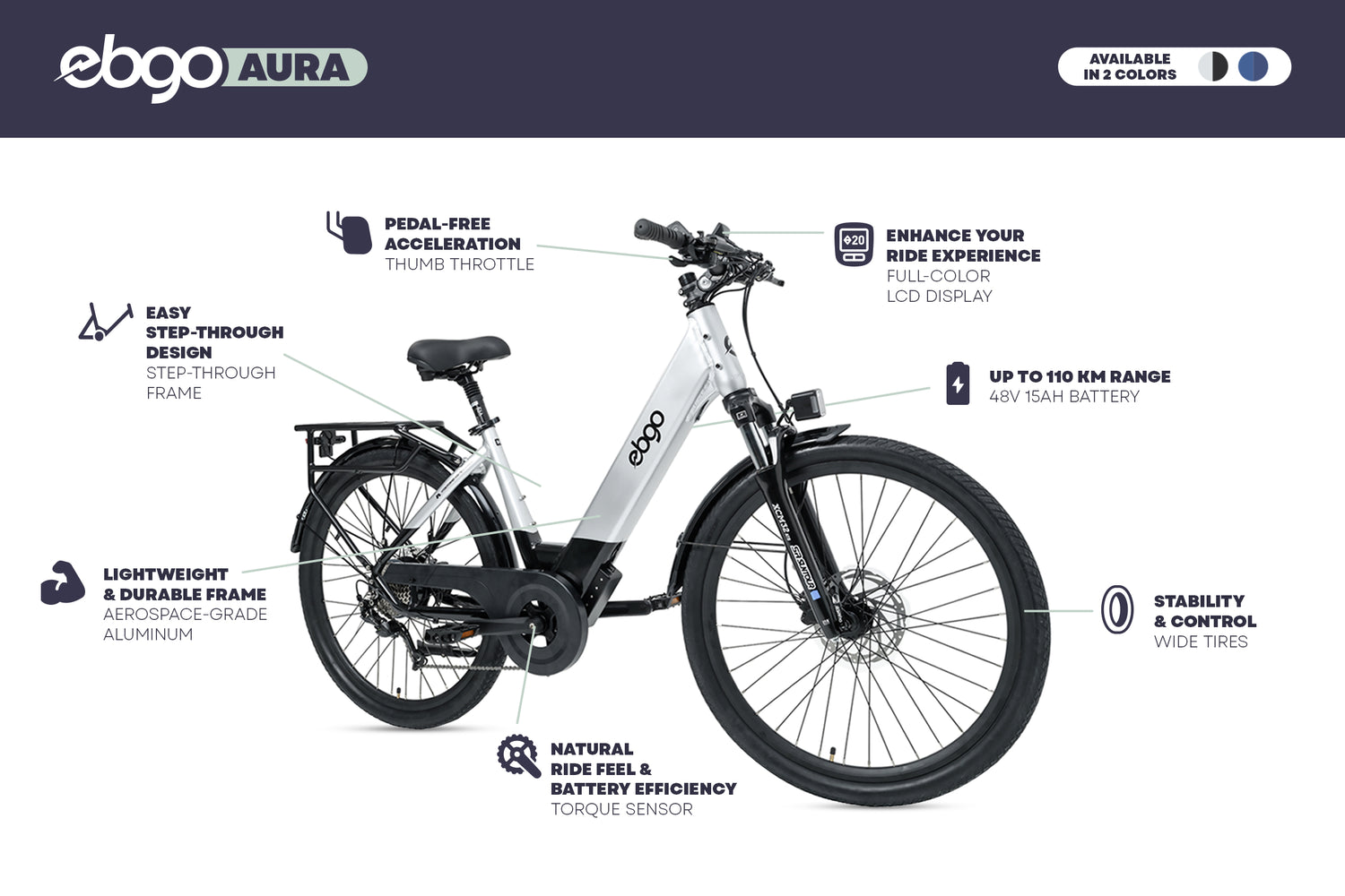 The ebgo AURA supports up to 275 lb (125 kg), including the rider and accessories, ensuring a stable, safe, and comfortable ride.