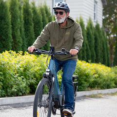 Le vélo ebgo AURA supporte jusqu’à 275 lb (125 kg), incluant le cycliste et les accessoires, assurant une conduite stable, sécuritaire et confortable au quotidien.